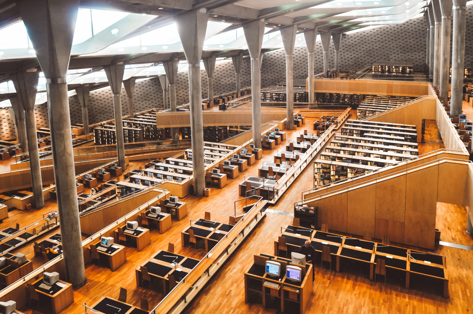 Standing on the Alexandrian Corniche, the Bibliotheca Alexandrina is a vast and striking example of modern 21st century architecture, but the building recalls something much older. The library and cultural center were inaugurated in 2002 as part of a huge project to commemorate the city of Alexandria’s legacy as an ancient center of world learning and culture..